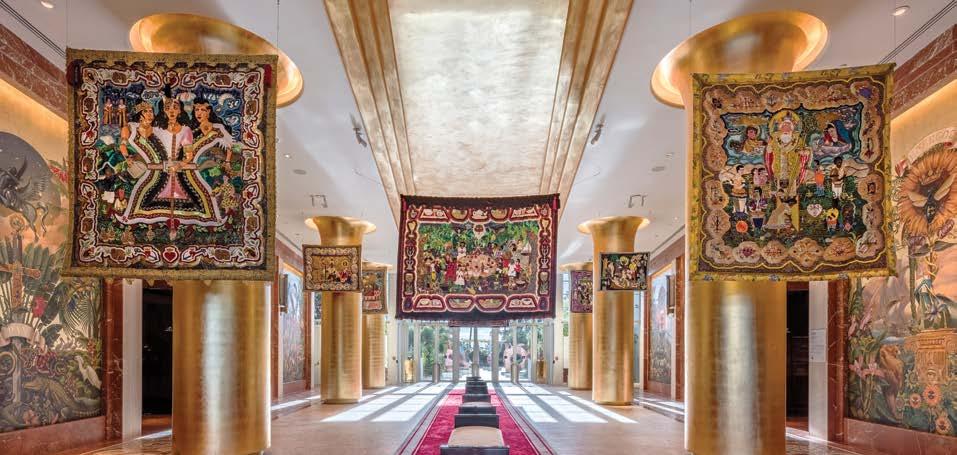 In a monumental series of murals for Faena New York , Juan Gatti masterfully intertwines the city’s iconic landmarks, Art Deco elegance, and Faena’s iconic symbols into a shimmering églomisé masterpiece.