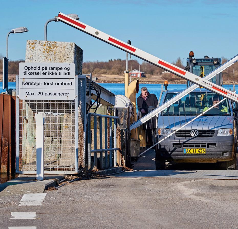 Skipper Allan Rosdal oplyser, at bortset fra håndværkeres vogne er biloverførsler til den bilfri ø meget sjældne. Til gengæld er der ofte trailere på dækket.