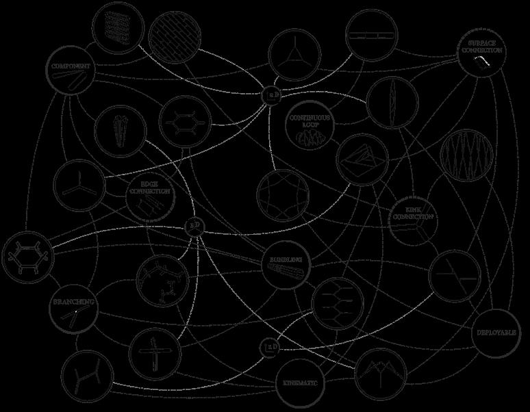 (ii) the use of continuous tape to create an adjustable composition with the environment through repeated loops (differential growth of the tape), and (iii) the application of branching and bundling logic in the creation of structures.