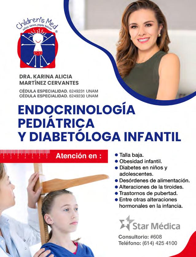Dra. Karina Martínez Cervantes. Hospital Star Médica Chihuahua, Cons. 608 Tel. 425 41 00 Cel. 614 494 13 93 Ced. Esp. 6249231, Ced. Esp. 6249230