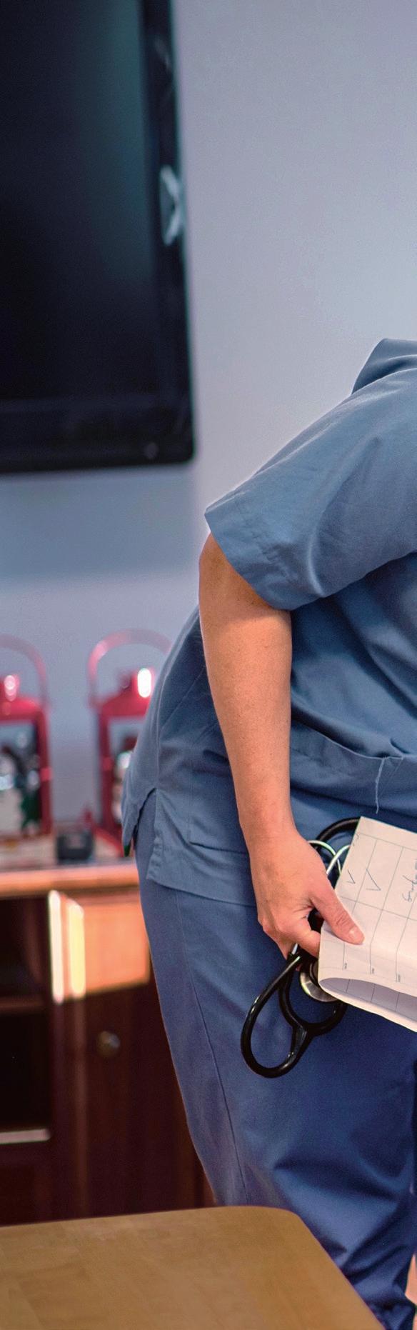Litt tidligere på dagen siver sang fra den andre siden av veggen inn på vaktrommet. Sykehjemslege Christine Gulla er klar foran PC-en, hun skal gjennom de siste dagenes rapport om de 20 beboerne. Observasjonene fra fagarbeiderne er helt sentrale.