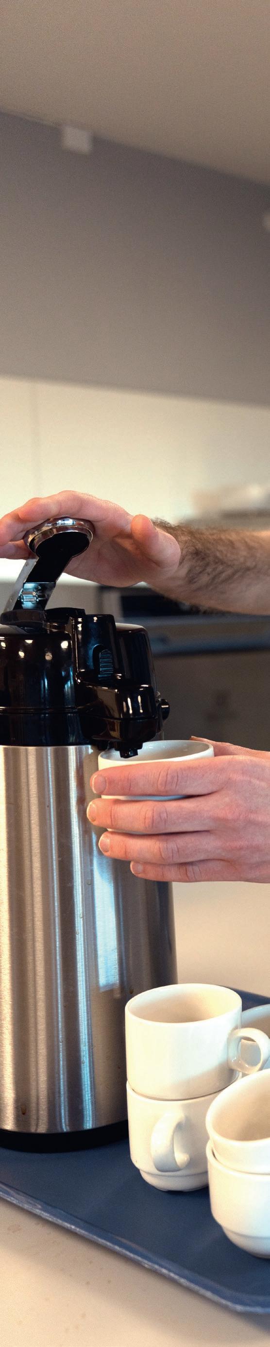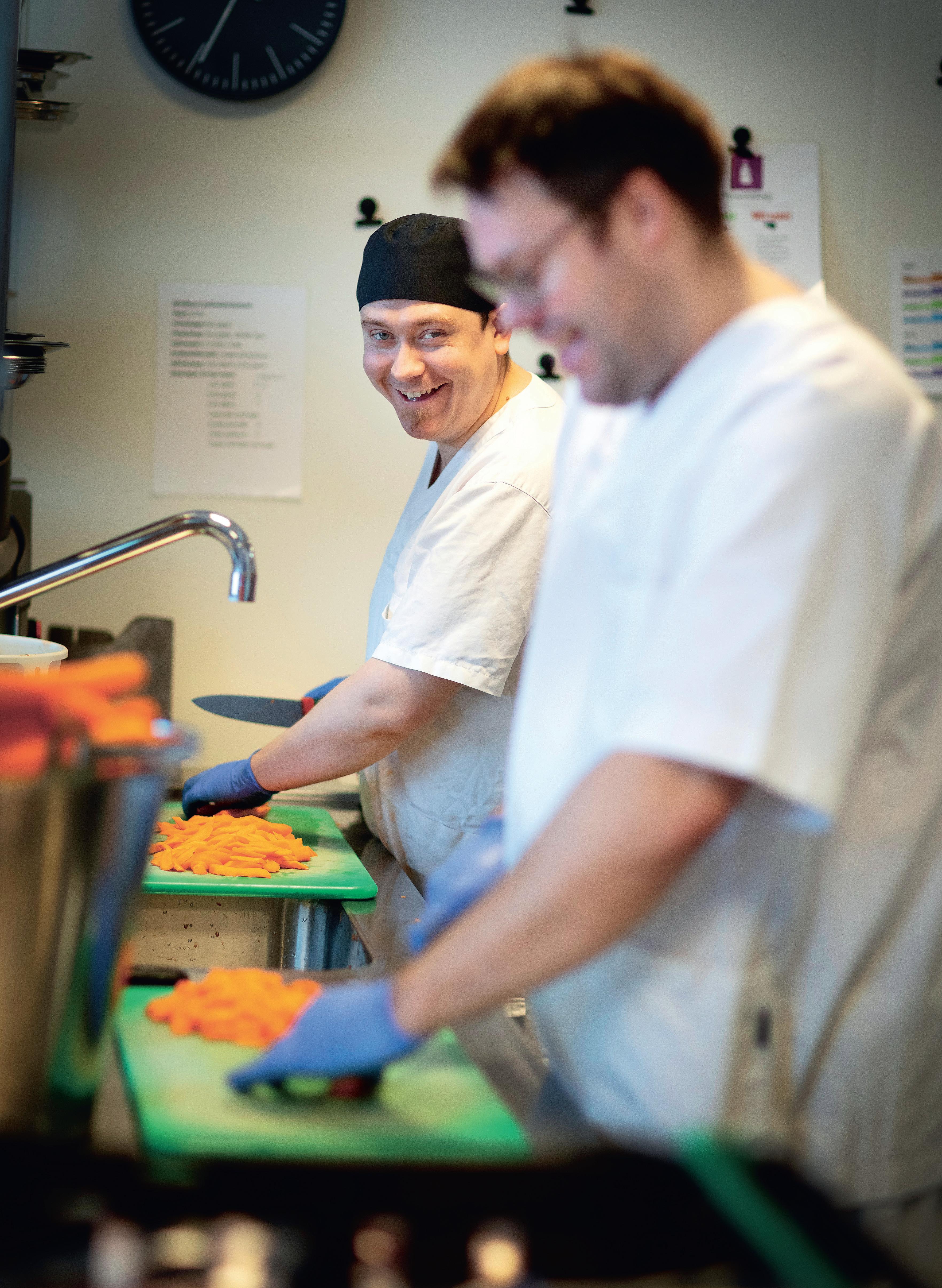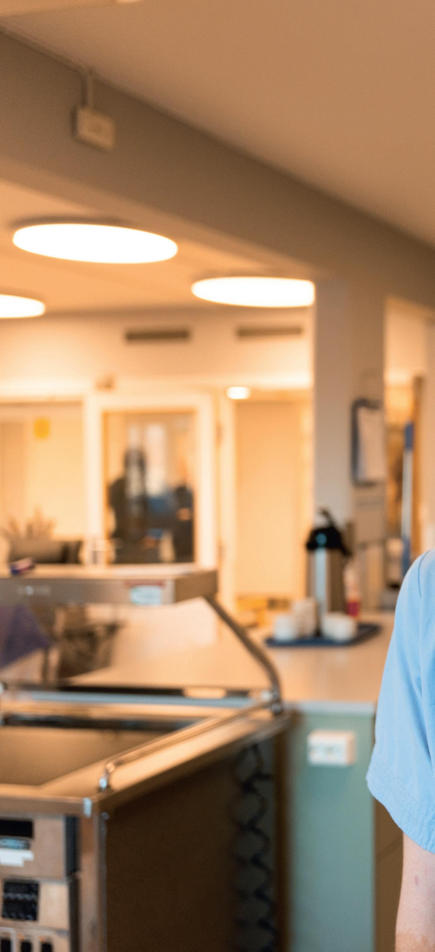 Fiskesuppa og kyllingbollene er straks klare til dagens middag på Ravnanger sykehjem på Askøy. Vintersola presser seg gjennom vinduene så lysstriper kan leke seg i rommet.
