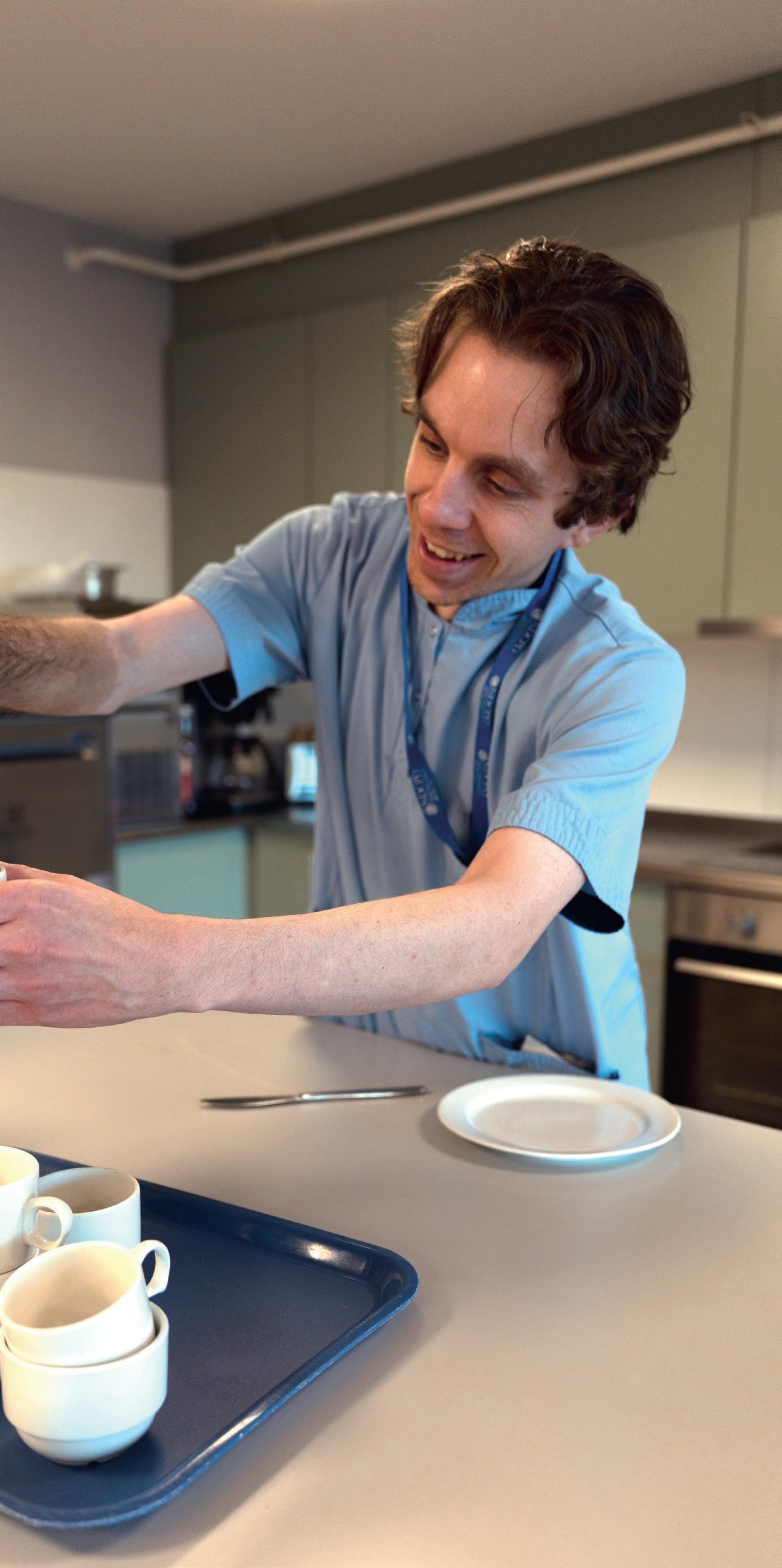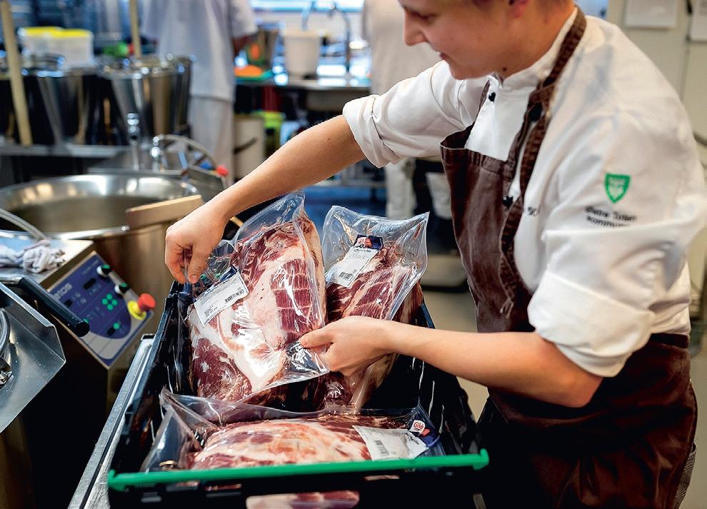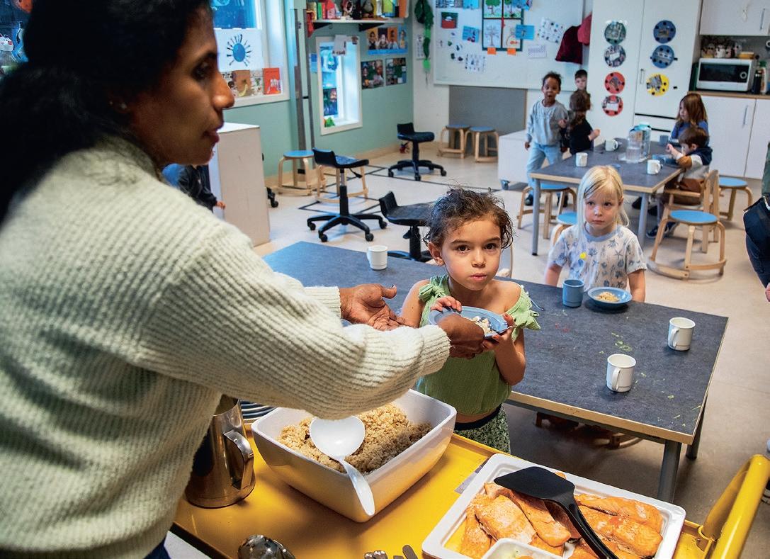 Fiskesuppa og kyllingbollene er straks klare til dagens middag på Ravnanger sykehjem på Askøy. Vintersola presser seg gjennom vinduene så lysstriper kan leke seg i rommet.