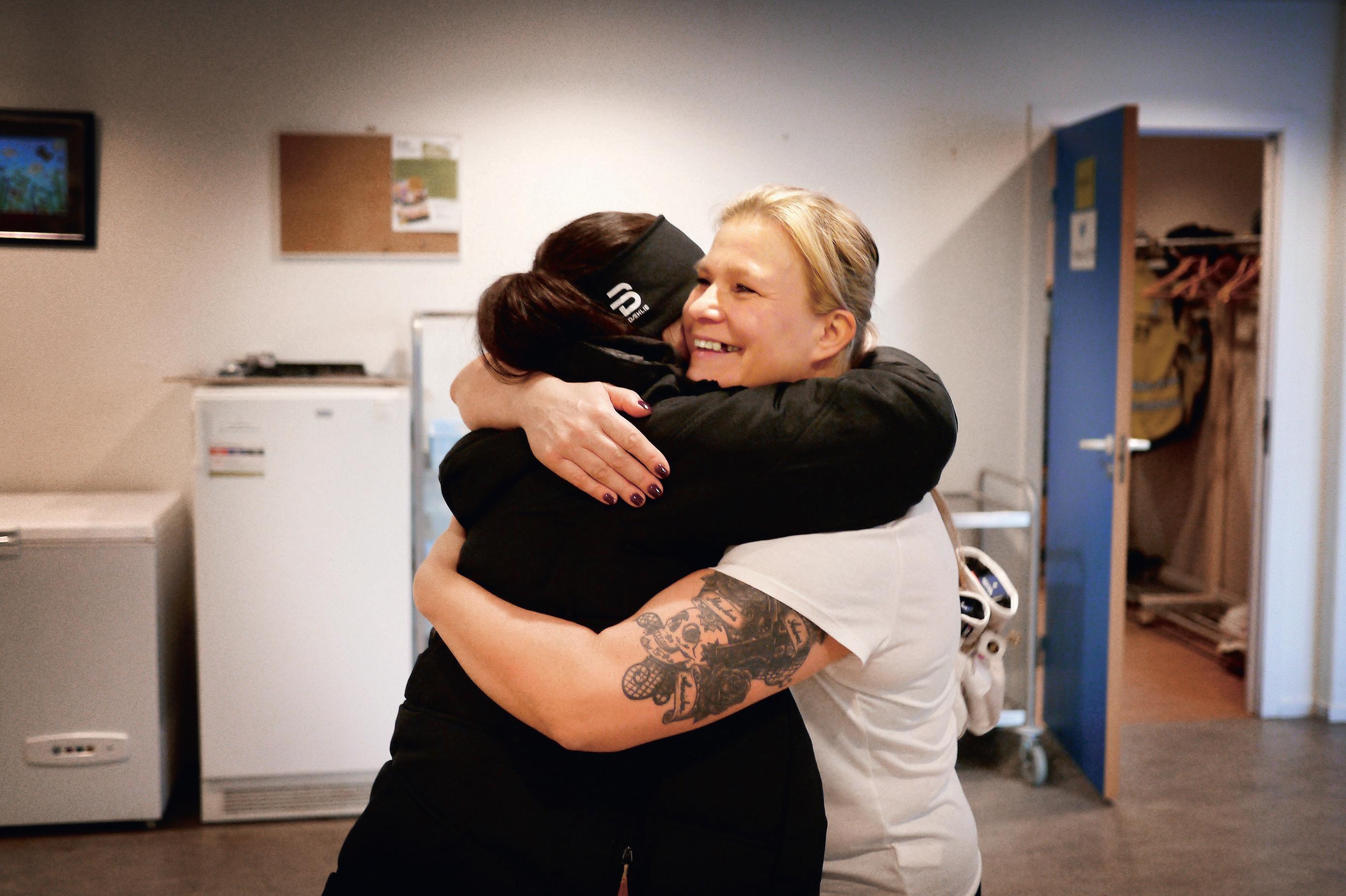 – Det er så fint at du tar deg tid til å sitte her, sier Skotnes, smiler og klemmer hånda hennes.