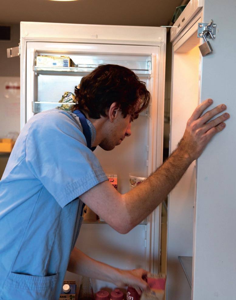 I medisinpermen på medisintralla på kjøkkenet noterer Johnsen ned klokkeslett for når medikamentet ble gitt, og virkningen hun har observert. Etterpå skriver hun det inn i elektronisk journal.
