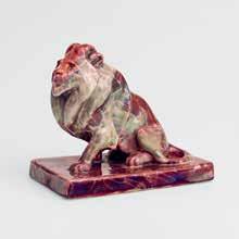 [2] Karl Hansen Reistrup for Kählers Verksted, statuett, leirgods, 1888–1897, 17,5 × 21 cm (VK.04399). I begeistra reisebrev frå Stockholmsutstillinga i 1897 trekte direktør Johan Bøgh spesielt fram Kählers Verksted med sine «egenartede Frembringelser (…) af mange Aars sindrige Eksperimenter». Foto: Dag Fosse/Kode