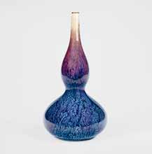 [1] Rörstrand porslinsfabrik, vase, 1897, porselen glasert med «rouge flambé», 24 × 12 cm (VK.06579).