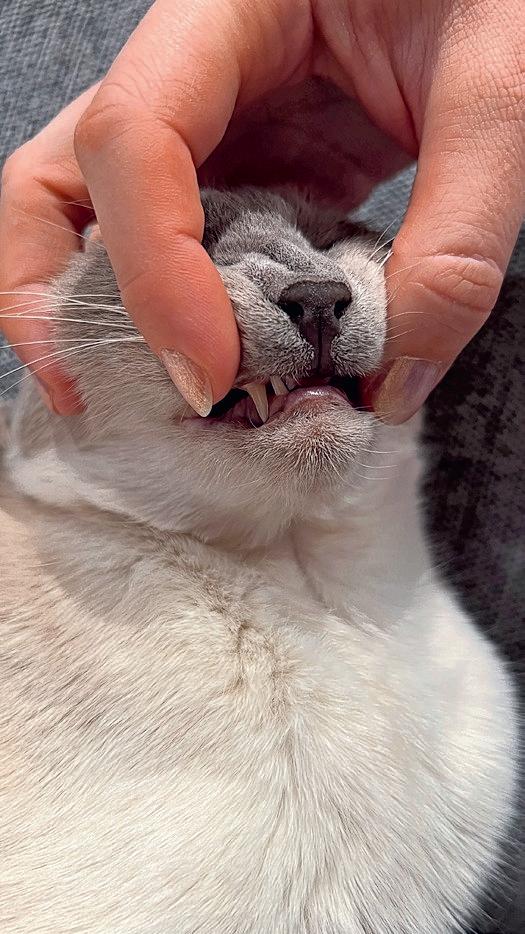 Tannsjekk tar tid. Men regelmessig trening på tannsjekk gjør katten roligere, slik at oppgaven går fortere og tannproblemene kan fanges opp tidlig.