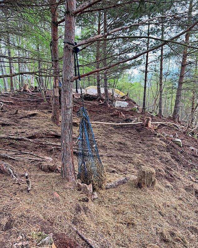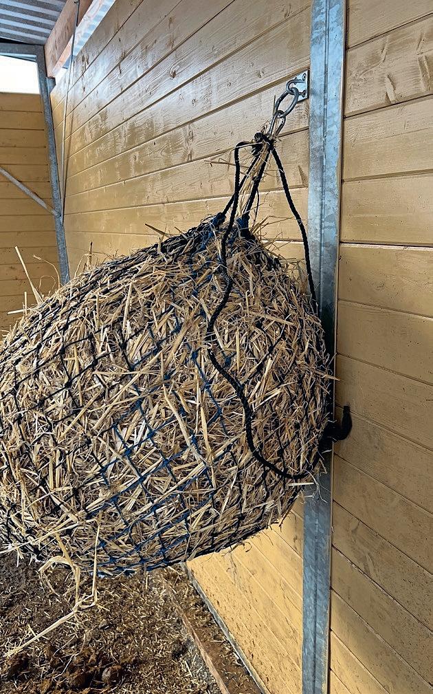 Dette høynettet er hengt opp med en stor løkke i enden av tauet. Her kan en hest i verste fall sette fast hodet og skade seg kraftig.