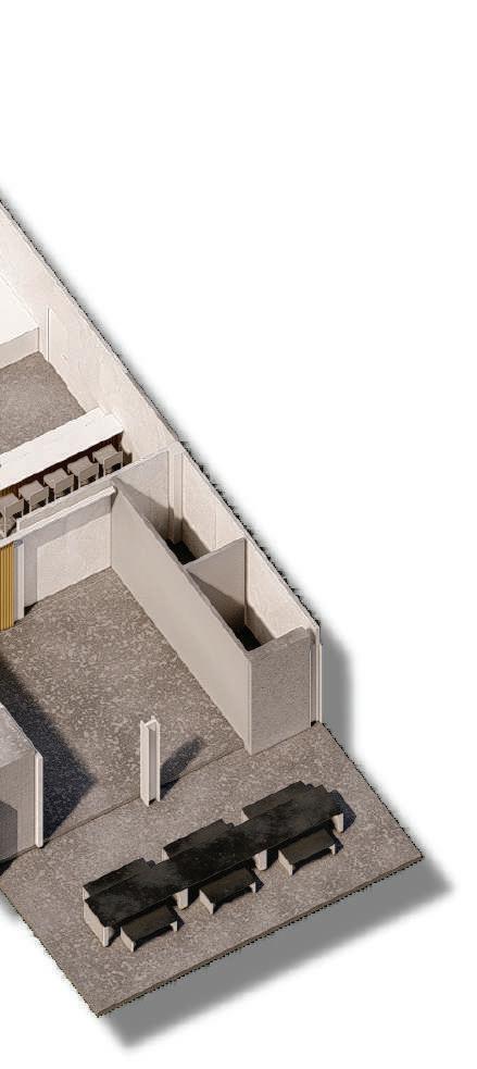 ในสวน exhibition จะเปนพื้นที่โลง พรอมปรัับเปลี่ยนสำหรับ นิทรรศการหมุนเวียน นอกจากนั้นการใชงานที่ตองการให user ไดรับคือ การตัดขาดจากโลกภายนอกและไดมาผอน คลายกับธรรมชาติภายในหองสี่เหลี่ยมกลางเมือง โดยมีตัว product เปนสวนชวยในการปลอยวาง