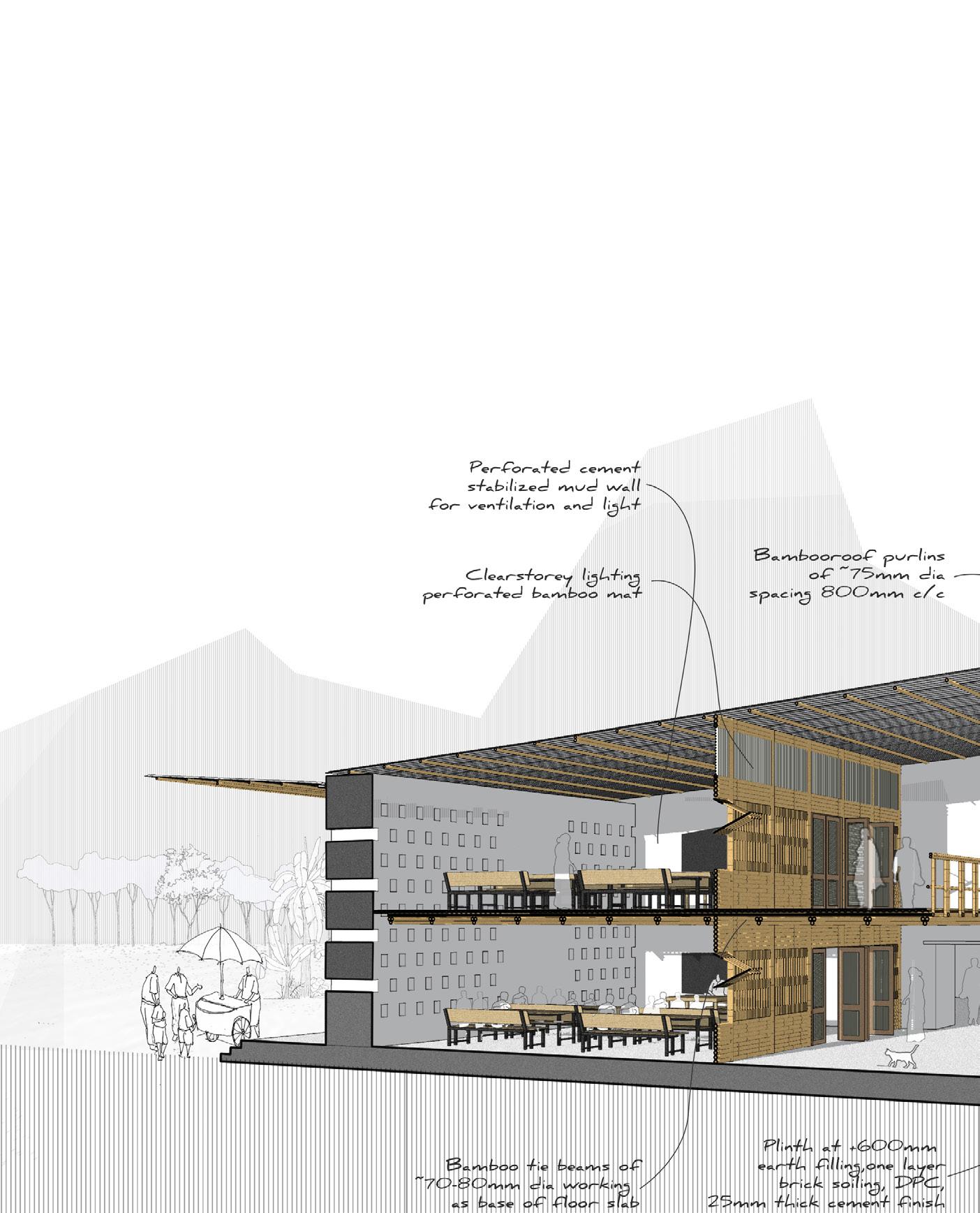 The building components mande of bamboo are specifically used with the focus of ease of maintenance, repairing, and construction. The construction methods are kept simple to adapt easily by the local artisans.