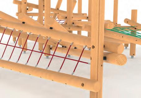 • Estructura de acero galvanizado con pintura electroestática, piezas galvanizadas, cuerdas y mallas.
