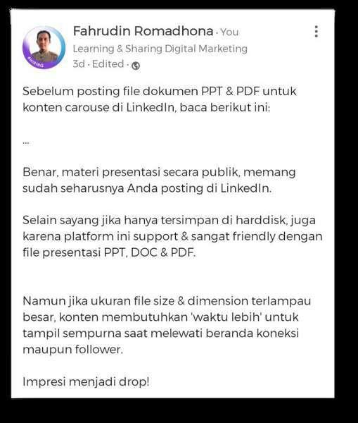 Berbeda dengan blog, posting di LinkedIn dengan gambar