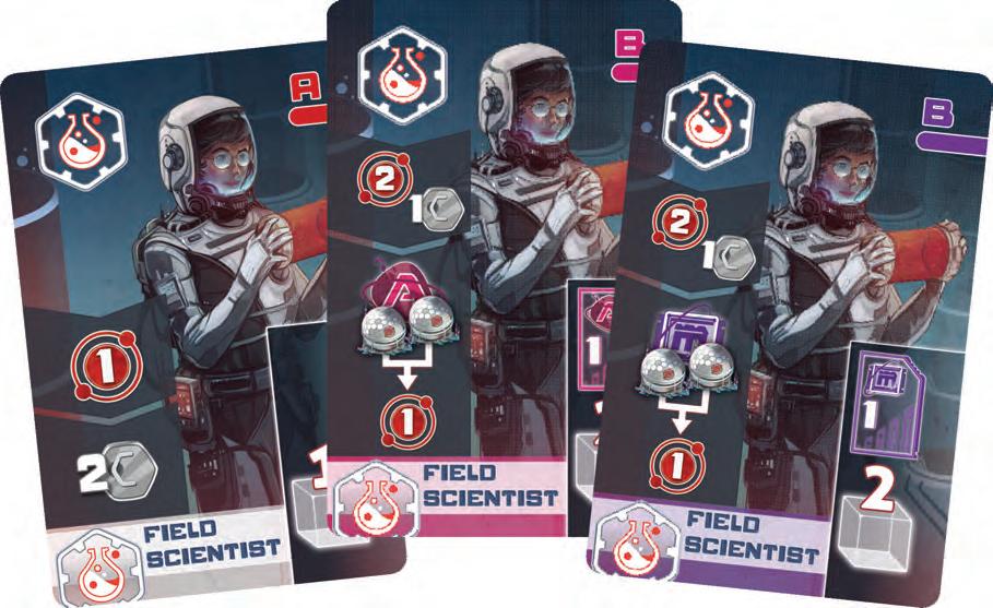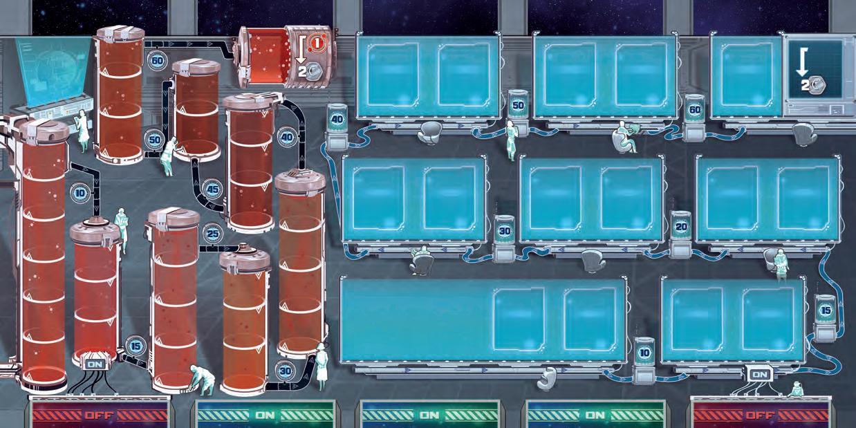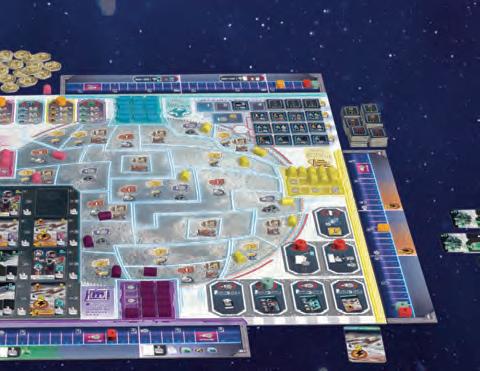 Activating research and field scientists will affect the research and tank tracks on a player’s personal board. Advancing along the research track will complete research plans and give rewards. Activating the field scientist will store up helium-3, advancing the marker on the tank track and paying out CrypCoin. Placing a bonus marker will allow a player to claim a special ability or reward from one of the open bonus spaces. Once a bonus marker is placed, it stays on that space and blocks it for the rest of the round, enabling some key strategic choices to block opponents and get ahead.