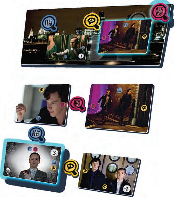 You can place your Thread cards and Proof tokens on your crime board at any time, even when it’s not your turn, and you can rearrange them freely throughout the game. When you complete a Plot card on your turn, you score it and get a new one. The first player to score 9 points is the winner!