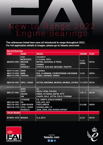 Covering over 165k applications with over 900 part numbers, our Engine Bearing range is one of the best in the aftermarket. We offer Main, Big End, Small End, Camshaft Bearings and Thrust Washers in the bold FAI brand.