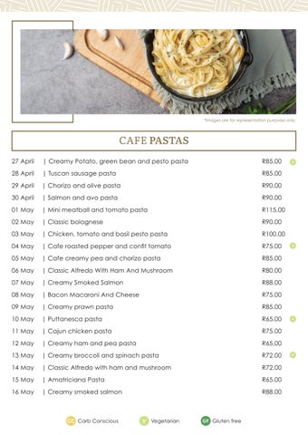 April - May Pasta Menu