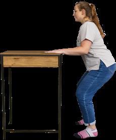 Set-up: Begin in a standing upright position with your feet shoulder width apart and your hands resting on a counter.