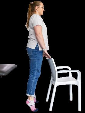 Movement: Reach forward and place one hand on the back of the chair. Then, stand up and immediately lift your heels off the ground. Hold for 3-4 seconds. Then, lower your heels down then sit down slowly. Repeat.