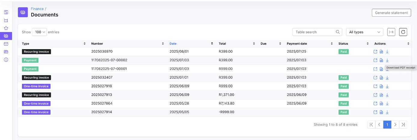 View and download your invoices and statement