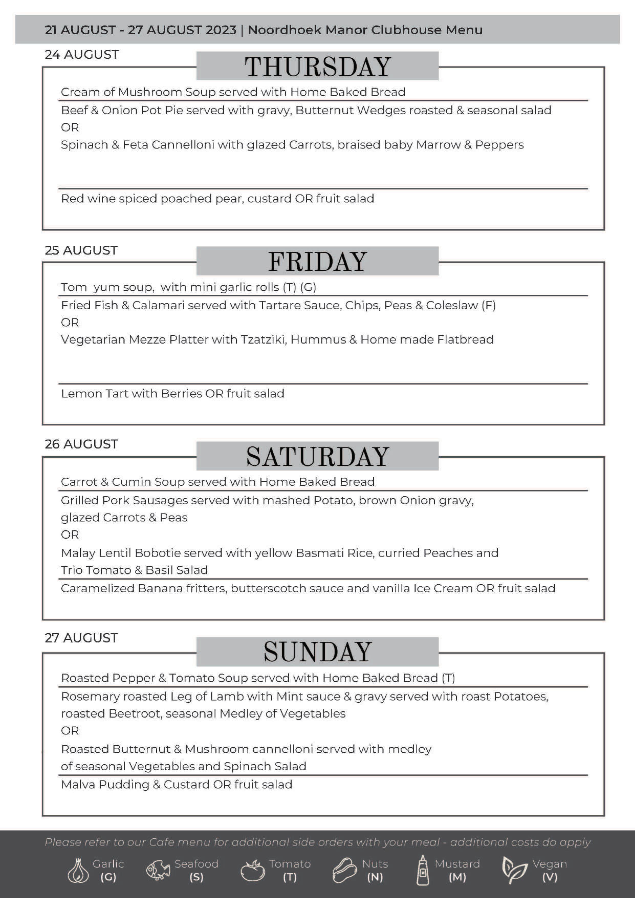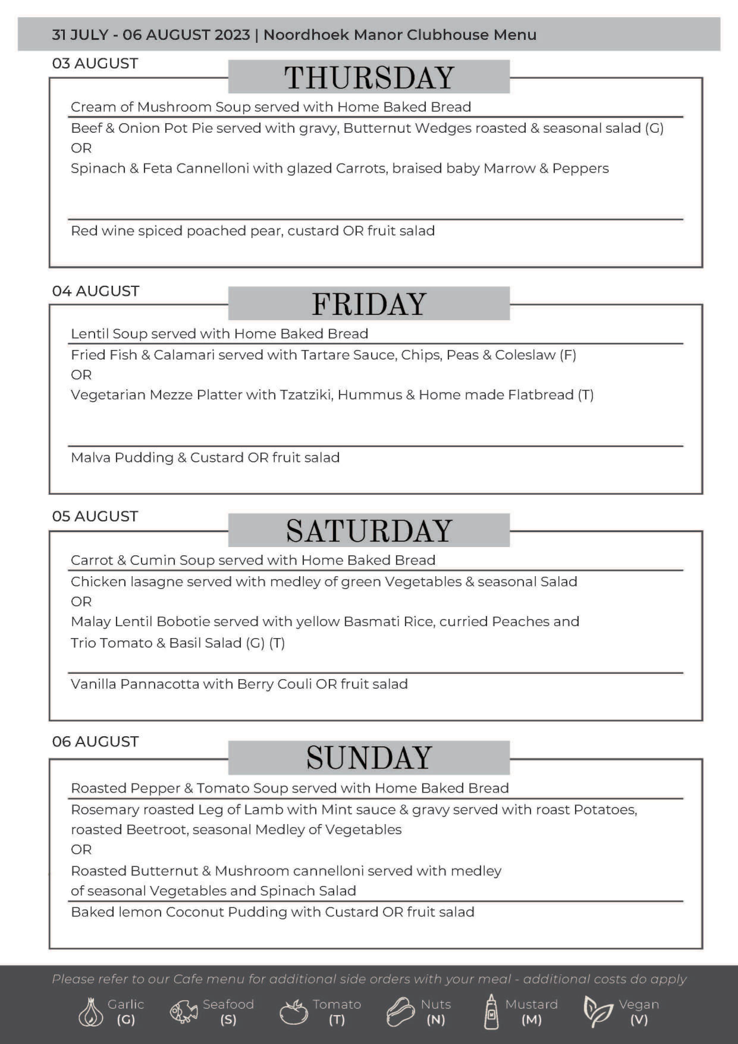 Clubhouse Menus | Noordhoek Manor | July - August by Faircape-Group - Issuu