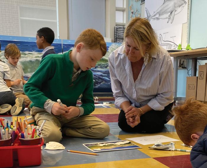 This year we welcomed artist Victoria Skomal Wilchinsky who visited our Lower School students on campus in November. Vickie began her career as a medical and scientific illustrator and more recently has been painting landscapes and seascapes inspired by her extensive travels. She taught the boys about bio-illustration, and the importance of creating accurate images of living creatures. She also worked with the boys to create their own realistic illustrations of sharks.