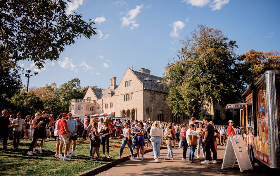 Alumni, students and families enjoying StagFest 2021 on Bellarmine Lawn. This event included food trucks, a wine and beer garden, a Stags Pep Rally and live band.