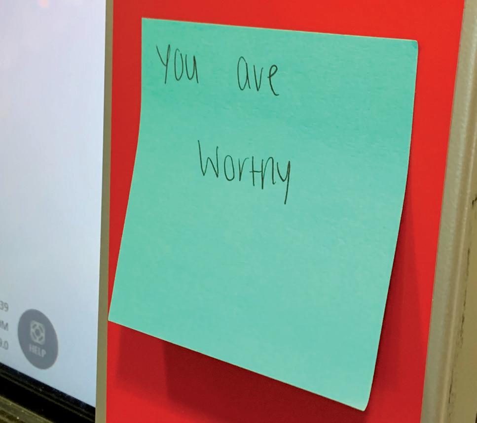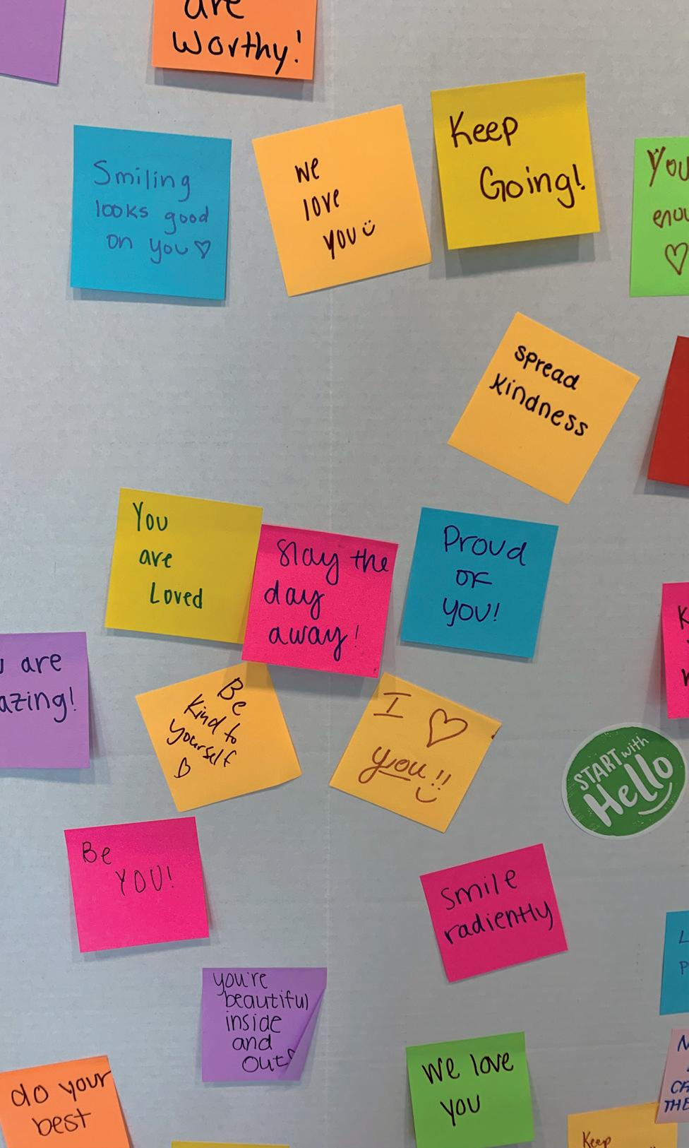 When walking around campus, it isn’t hard to notice the many positive messages written on brightly-colored sticky notes. e eye-catching papers read encouraging phrases such as “you are always enough,” “you are worthy” or “make today a great day.”