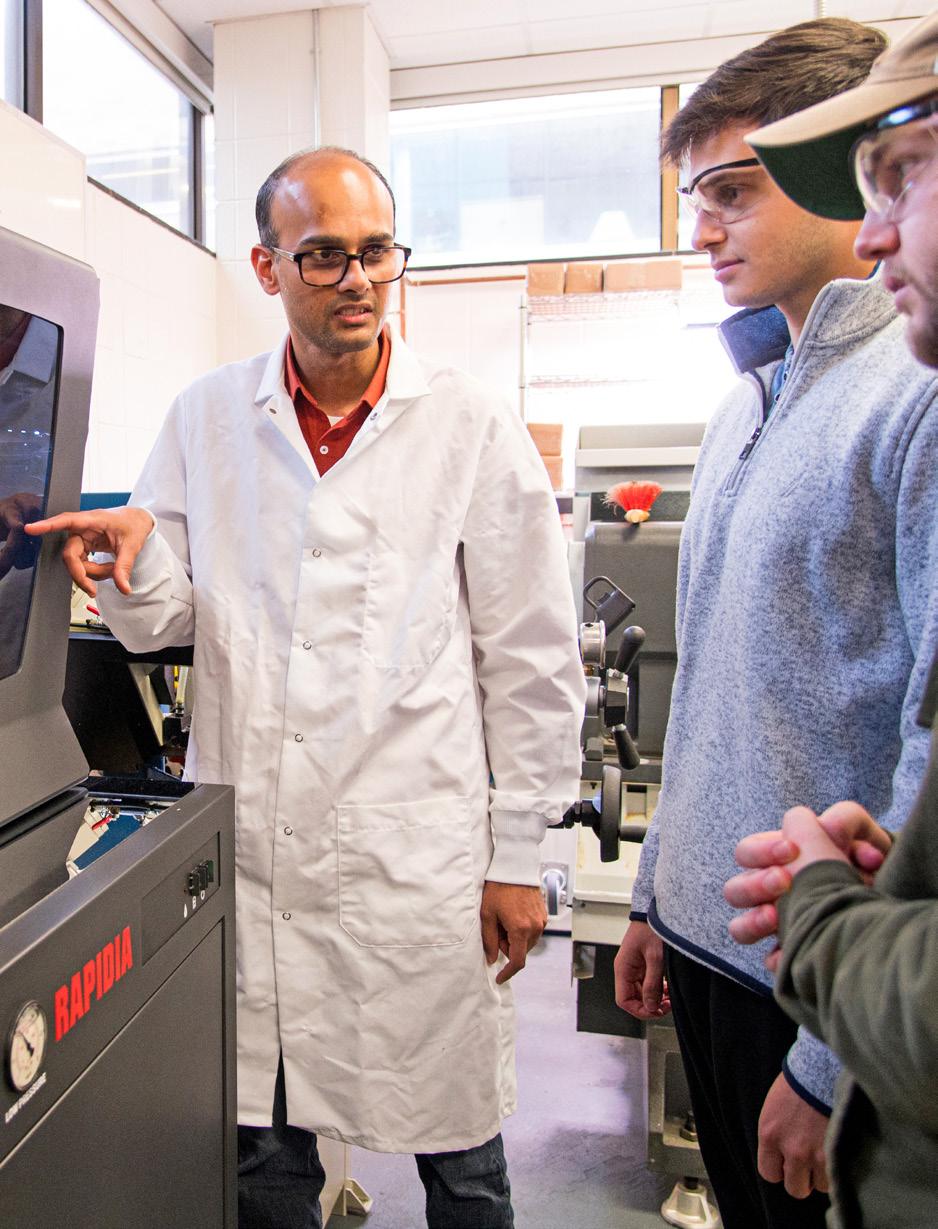 Mechanical engineering grad students Shaun Ormiston MS’23 and Dylan Weber ’21, MS’22 spent many hours in the lab under Dr. Sundarram’s guidance. Weber, who currently works as an airframe design engineer at Boeing in Los Angeles, said that the aim of their graduate lab research was “the application of mathematical equations to generate solid models, and figuring out how to fabricate the structures using additive manufacturing [3D printing].”