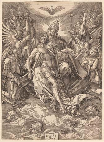Since carving a woodblock required specialized training, most artists relied on skilled craftsmen who could translate their drawings onto the block. Albrecht Dürer, who trained in Michael Wolgemut’s workshop as a young man, may have been an exception in producing at least some of his own woodblocks. In The Holy Trinity (cat. 13, p. 6), for example, which is often considered Dürer’s most technically-proficient woodcut, the gray midtones are produced by criss-crossing lines of extraordinary delicacy.