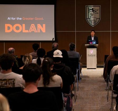 F acu Lty expertise an D ongoing research in the field of AI furthers Fairfield Dolan’s mission to promote “AI for the greater good,” as exemplified by Jie Tao, DSc, associate professor of business analytics and director of the AI and Tech Institute. Dr. Tao was recently awarded the University’s prestigious Robert E. Wall Award, which recognizes excellence in faculty research, for his work on mental health detection technology.