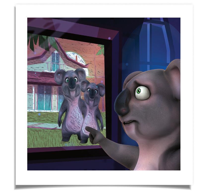 Two koala ears disappeared behind a loudly slamming door. Kev stood speechless, staring at a beautiful beach house. Slowly, he looked around. Nice sports cars lined the driveway. Elegant homes stretched along the long street. “Where am I?” mumbled our koala friend. Kev had no idea where he was, or why he was there. A shimmering gemstone rested in his hand, but he had no clue what it meant or how it got there. Without a plan, without a memory, he wandered off through the quiet, shadowy street.