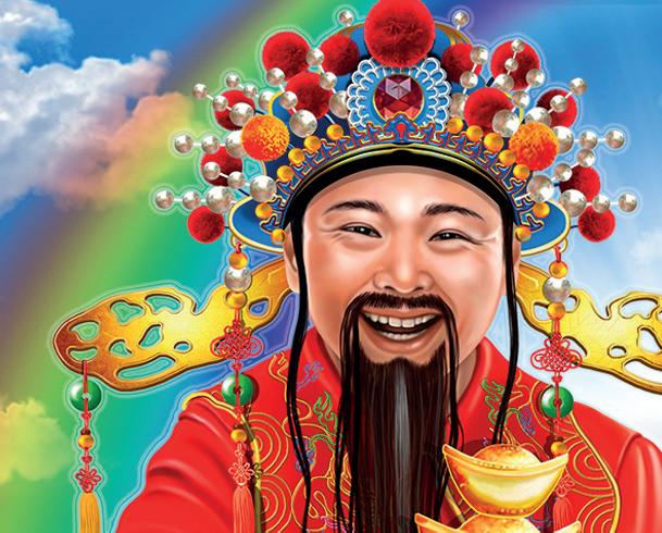 The god of wealth is a good bloke. He rewards all punters (even the ones who choke). With a wave of his hand and a wink of his eye. He sends your payouts and winnings sky high. So don’t think Ireland when you see a rainbow. Think the god of wealth and watch your balance grow. He brings good luck to members far and wide. So spin those reels and let him provide!