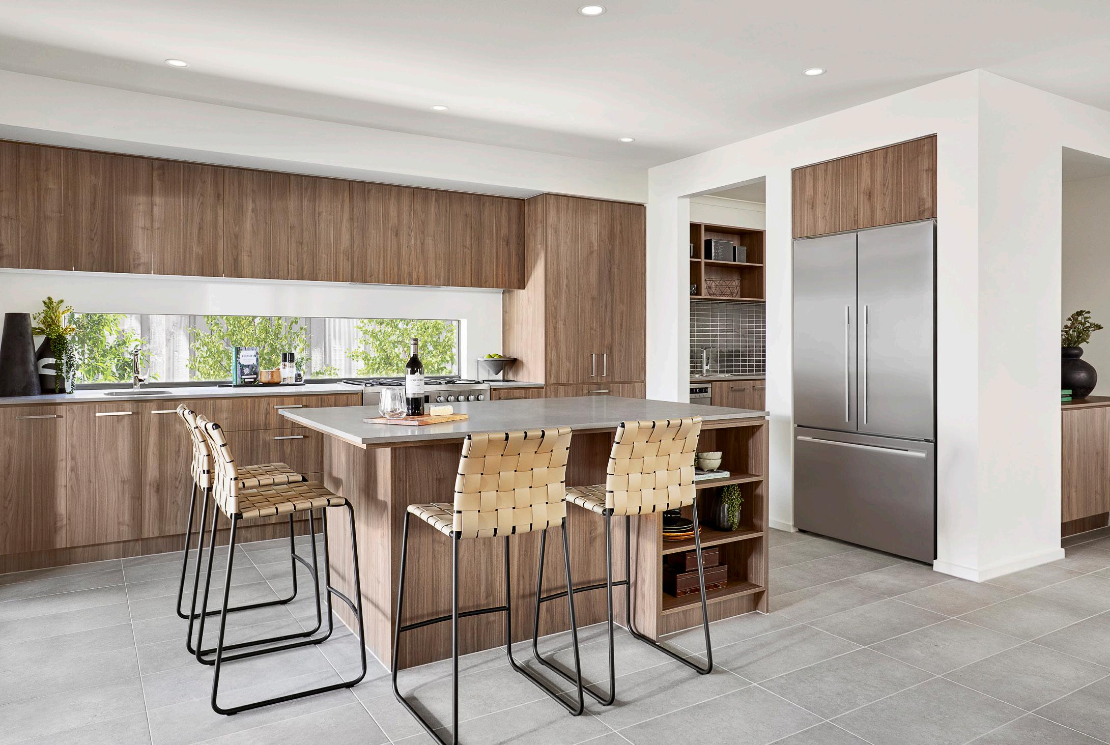 Specifications 1. Tiles Manufacturer: Colour: Upgrade Beaumont Tiles Rome Cement Dark Grey Gl-Porc Rect - 298x600 2. Cabinetry Make/Type: Colour: Upgrade Polytec Melamine Nataio Walnut Woodmatt 5. Sink Manufacturer: Type: Upgrade Seima Arko 027 Above Counter 3. Handles Manufacturer: Type: Included Hafele 109.86.003 Stainless Steel