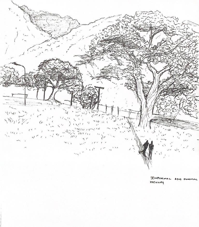 Along Gibraltar Camp Rd. There is a path of interest that guides students from one end of the site, toward the gate that allows one to exit the University of the West Indies along Castries Rd. This was determined to be the strongest force on the site as it is the representation on + on the site.