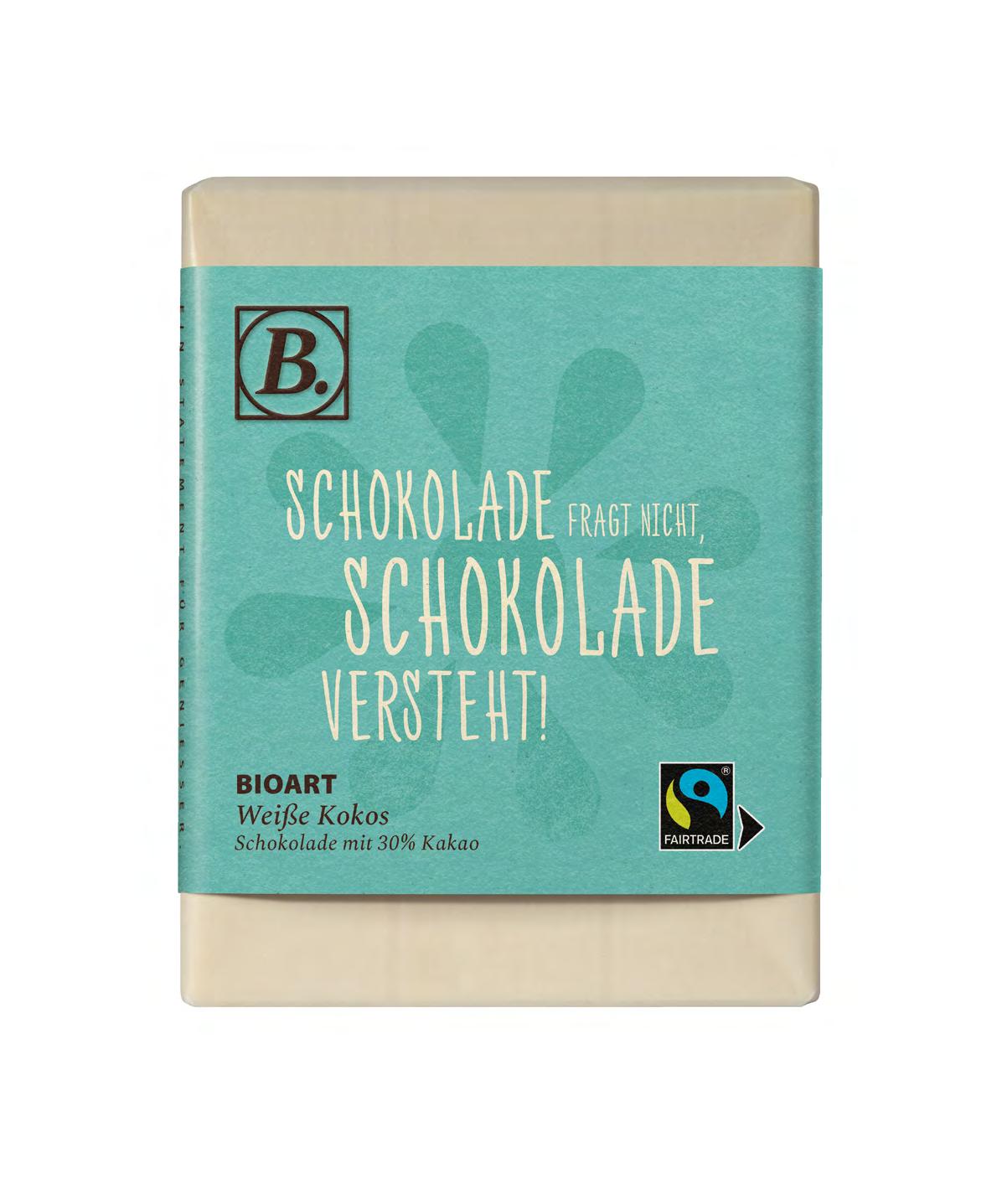 Wir setzen nicht nur auf qualitativ hochwertige Inhaltsstoffe, sondern legen auch großen Wert auf umweltfreundliche Verpackung. Unsere edlen BioArt-Schokoladen sind in Pergamin eingehüllt, welches frei von Silikon, Klebstoffen und Aluminium ist. Die Banderolen tragen stolz das österreichische Umweltzeichen und können ab einer Mindestbestellmenge von 250 Stück für eine individuelle Schokoladengestaltung verwendet werden.