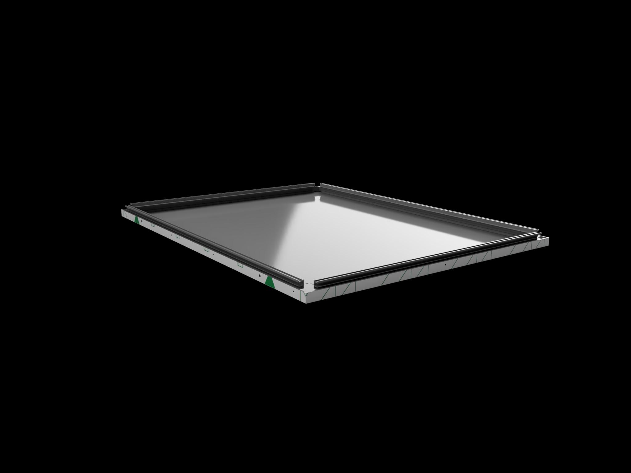 Add the AH-108 Panel Bracket into a panelcorner on top of both Frame extrusion shelves. Hold the Panel Bracket tight against one Frame but hold it about 1/16” away from the other.