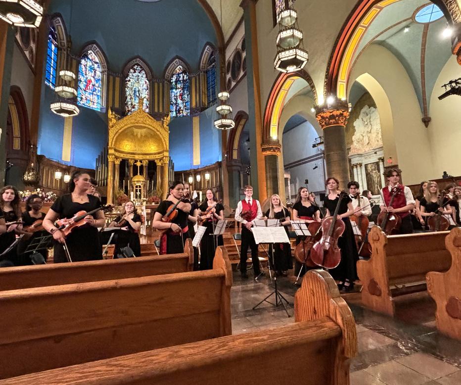 Fairview High School orchestra students visited New York City, experiencing world-class performances and iconic landmarks. Students also held a performance at Saint Paul the Apostle Church.