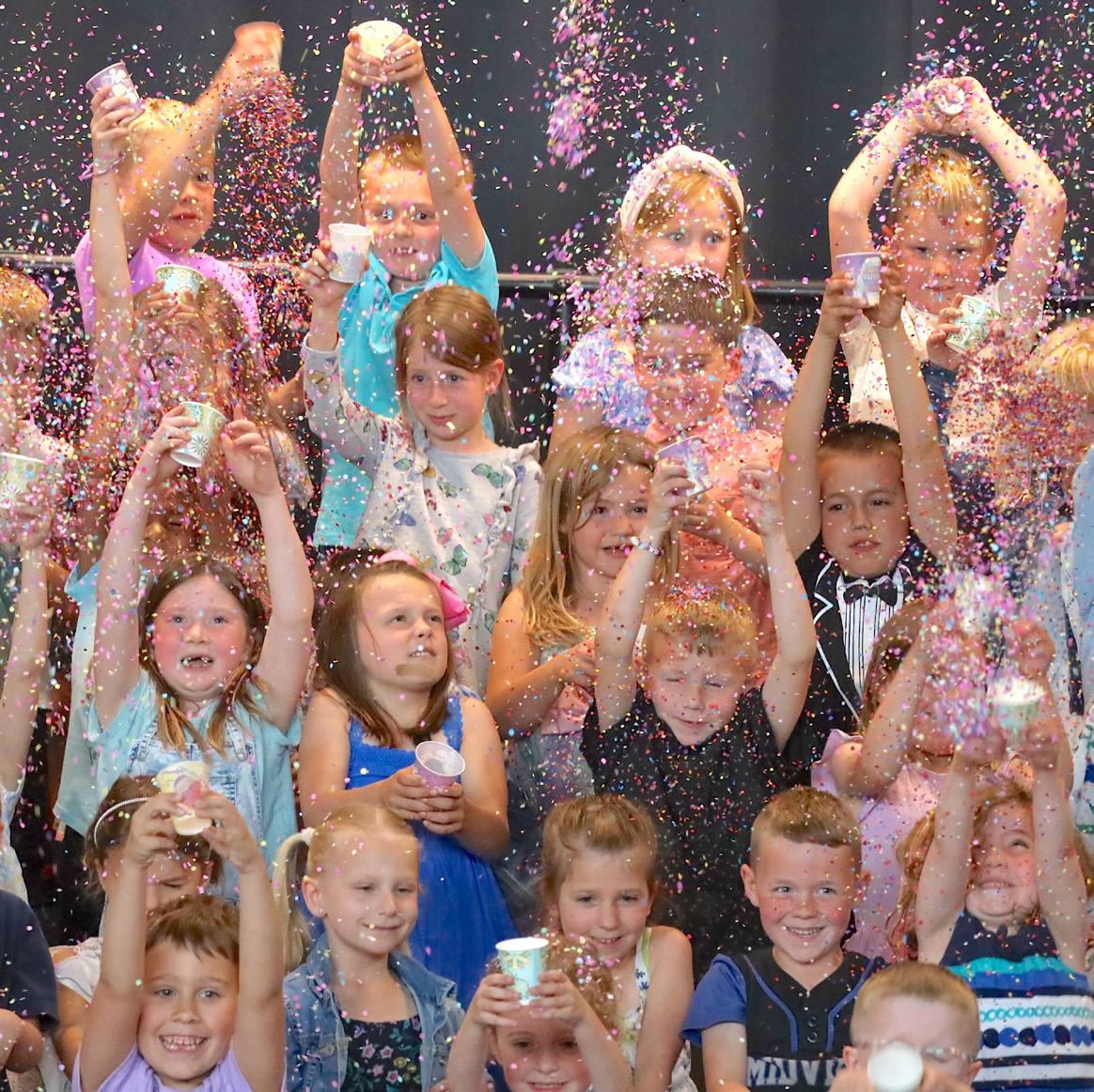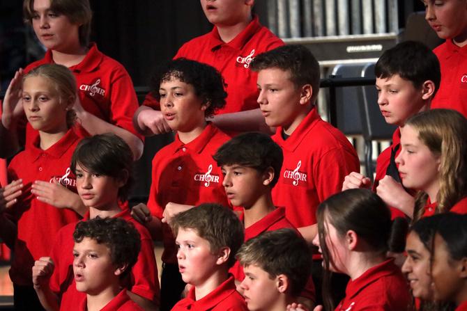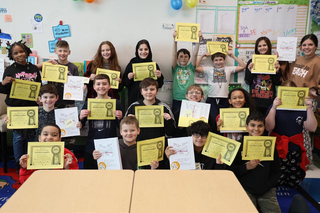 1. INNOVATE: Middle school students in Project Lead the Way engineered and perfected the design of their vehicles for the annual Polaris Palooza competition. 2. COMMUNICATE: Third grade students presented to family members and special guests about the “I Survived” book series. 3. LEAD: Fifth grade students in Mrs. Rushnok’s class at Gilles-Sweet published “Tales from the Classroom,” a book of original student written work. 4. COLLABORATE: Fairview High School choir students perform as an ensemble at the spring 2024 concert, highlighting their many extracurricular activities in addition to music.