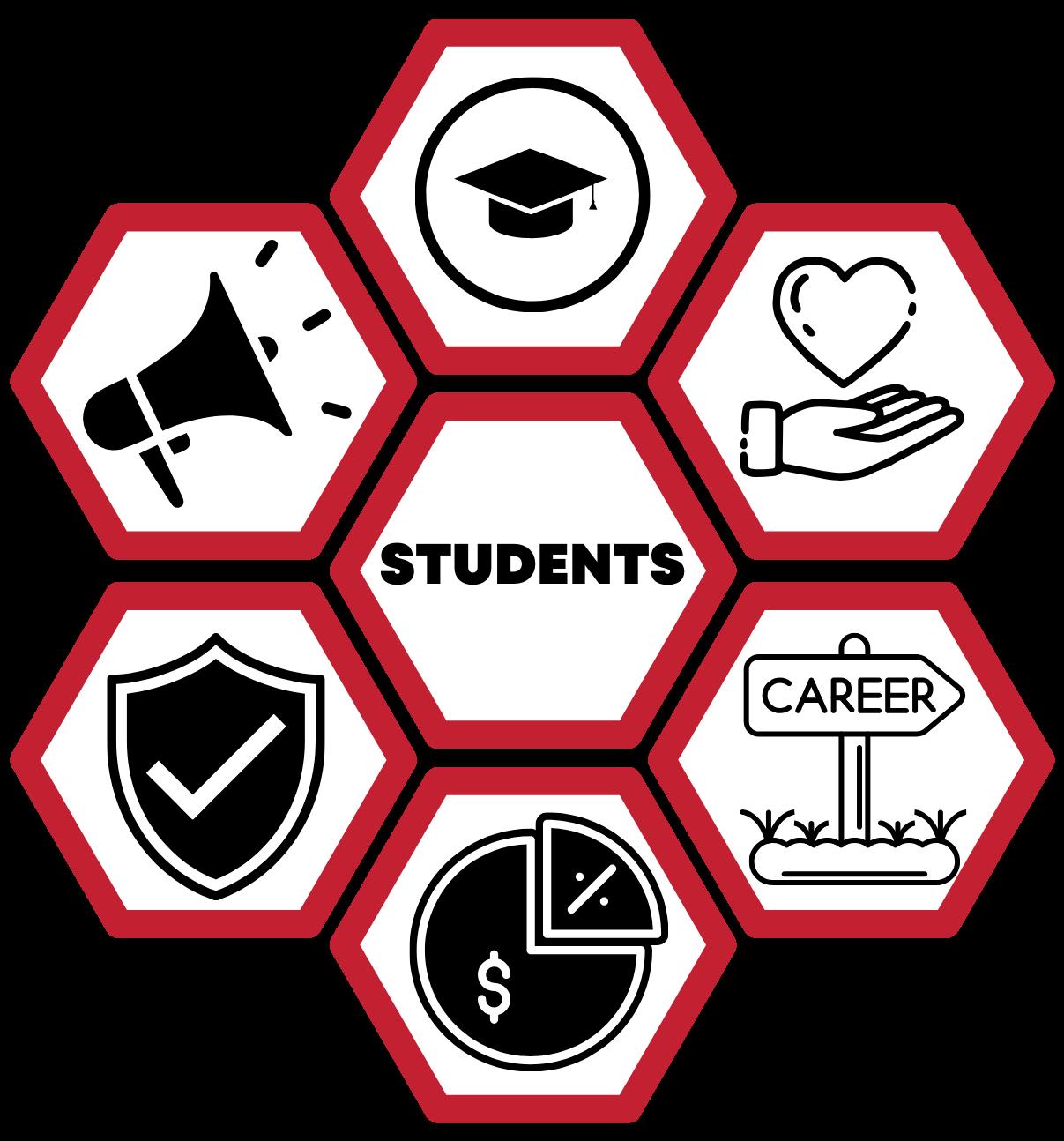 Student success is at the core of our STRATEGIC PLAN. Students succeed when organizational decisions focus on continuously improving student experiences in and out of the classroom. The six focus areas broadly describe related organizational structures that, when aligned strategically, will improve performance and positively impact student success.