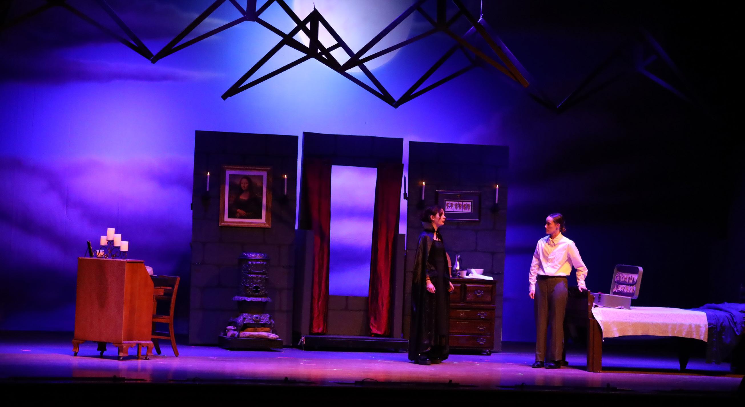 Pictured at top: Fairview High School’s production of “Dracula” in November 2023 featured multiple complex sets and lighting schemes. Pictured are Mia Karp ‘25 (L) as Dracula and Andrew’s sister, Elizabeth Hille‘24, (R) as Jonathan Harker.