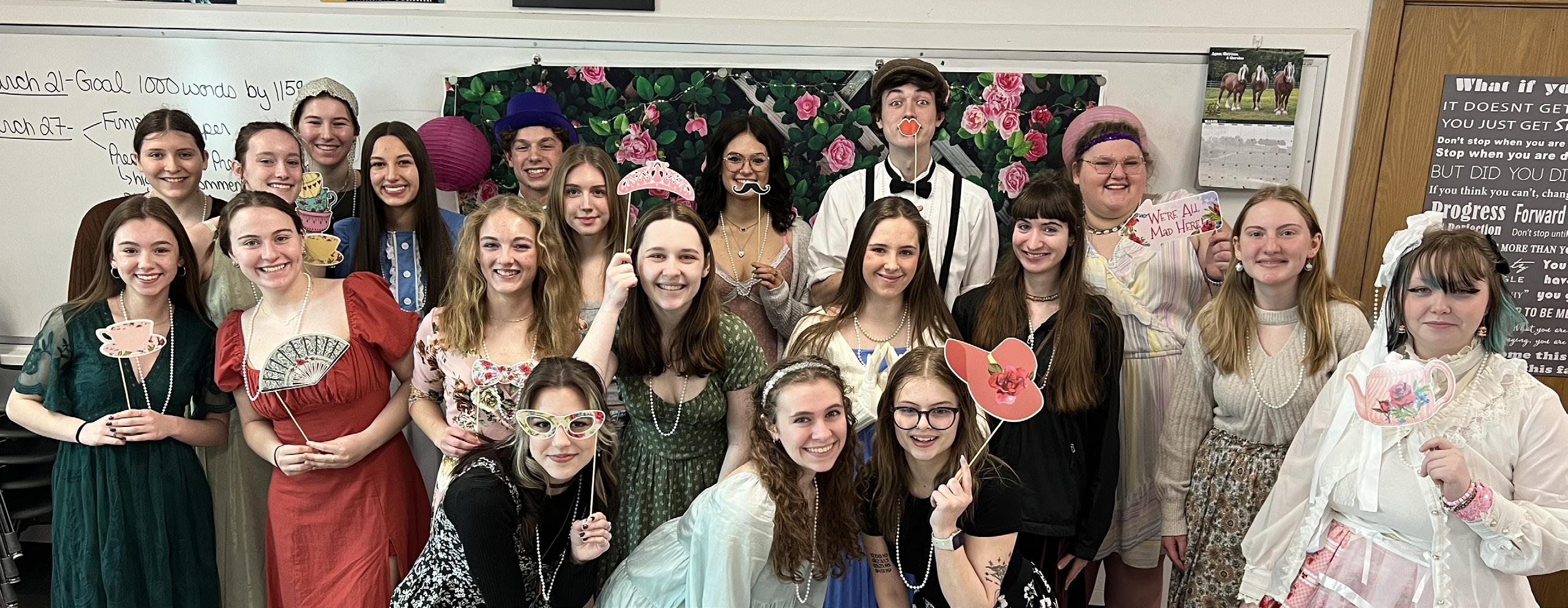 To celebrate the completion of the novel “Jane Eyre” by Charlotte Bronte and the end of their reading assignments for the course, students in Mrs. Becky Hicks’ AP Literature class held their own Victorian-era Tea Party in March. The class read approximately 3,200 pages in seven months.