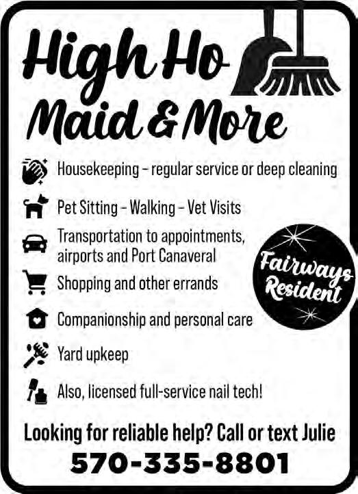 The Eagle is published by the Fairways Homeowners Association of Orlando, Inc. for the benefit of Fairways residents. • The Editor and Management Staff of Eagle newspaper reserve the right to accept, reject or edit articles, advertisements and all other community/club submissions in order to conform with the polices of this paper. Those policies are: • We do not publish anonymous opinions. Names will not be withheld. • Letters to the Editor must include the writer’s full name, signature, address and telephone number. Addresses and telephone numbers are used for validation purposes only and will not be published.• Submissions from any source become the property of the Eagle newspaper.• All submissions are subject to editing for grammatical and spelling mistakes, accuracy, clarity, civility and length.• Any submissions that express libelous, insulting or polarizing content will be rejected.