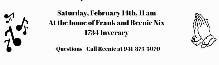 Our Singles Club will be meeting for dinner on Sunday, February 1st at Chow’s Country Buffet at 4 pm. The restaurant is in Titusville (first right turn off 50 after going under the I-95 underpass). The address is 3125 Columbia Blvd.