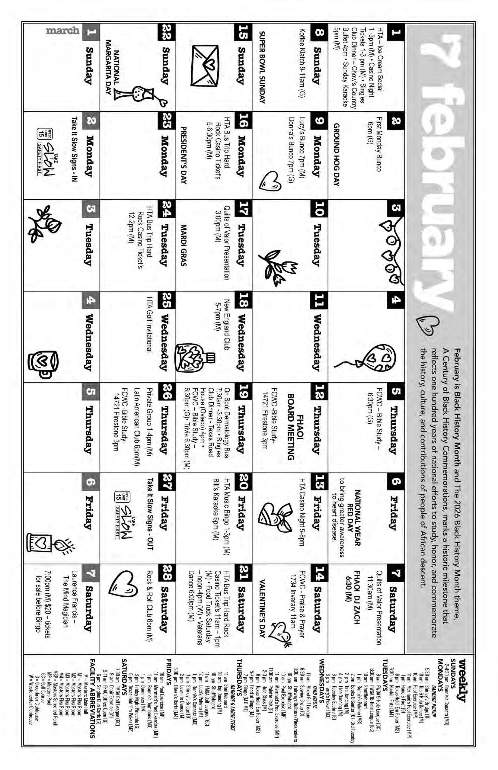 Keep up with our events in the Fairways Eagle, TV Monitors, Facebook and Nextdoor.