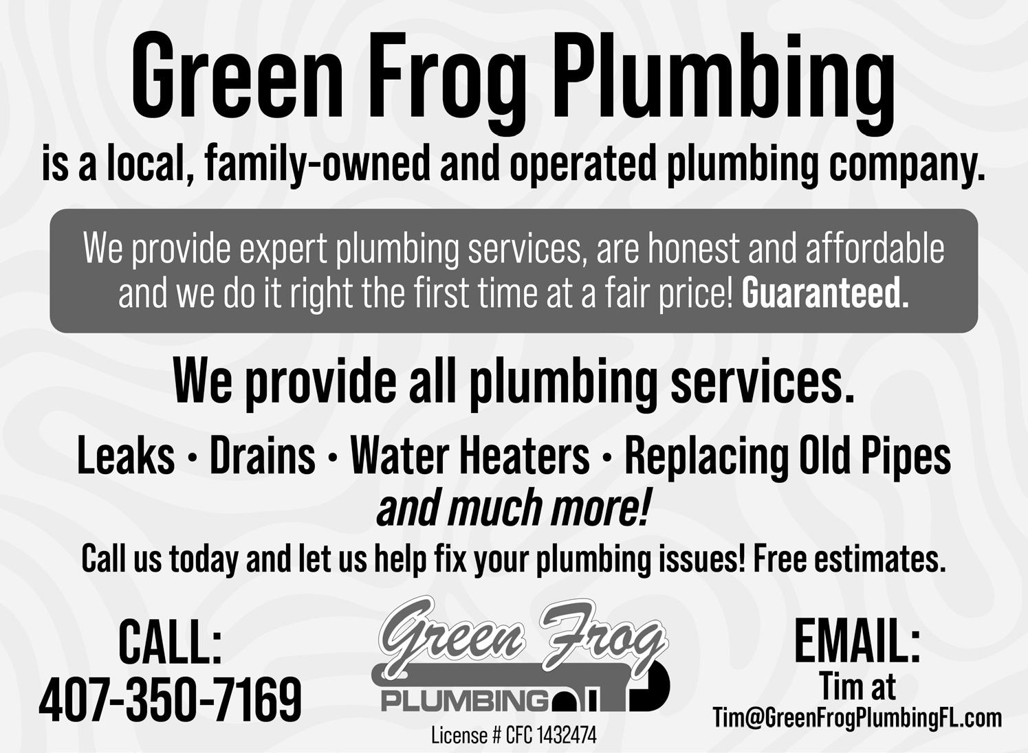 Green Frog Plumbing Plumbing Services 407-350-7169
