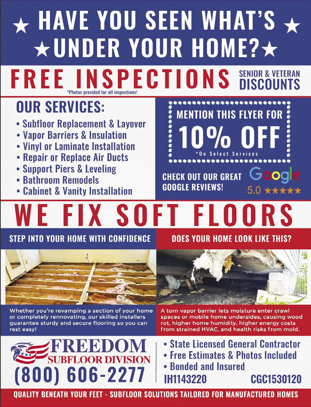 Freedom Subfloor Division Vapor Barrier, Duct Work Plus 800-226-0955
