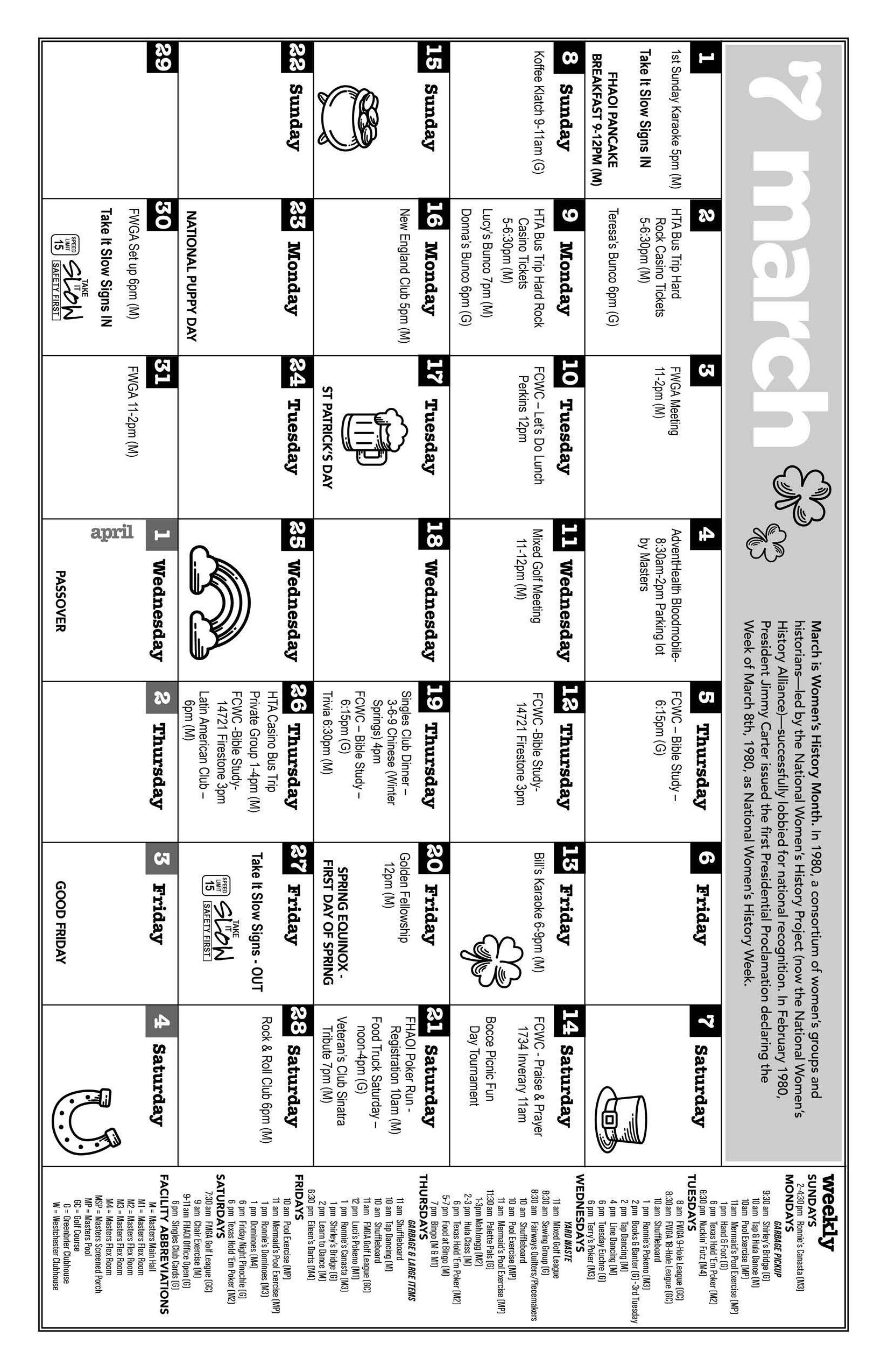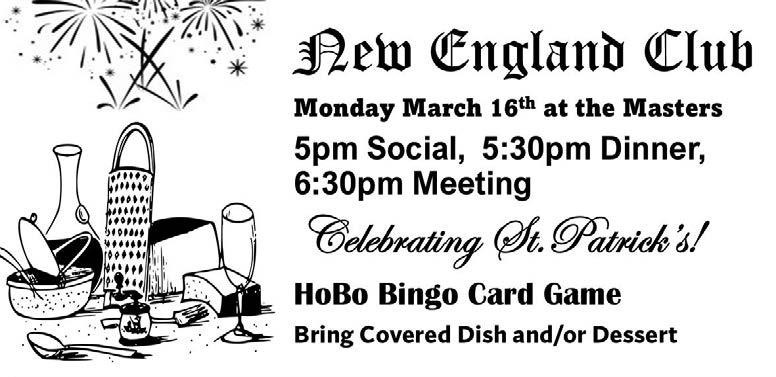 • Daylight Savings time begins Sunday, March 8th. Don’t forget to turn your clocks ahead by one hour.