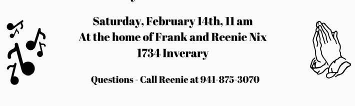 Please let Sherri know by phone or text if you will be joining us - 321-431-3848. Also, please let me know if you need a ride.