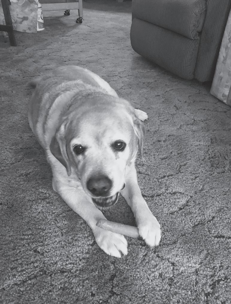 Sweet Lulu is an AKC English Labrador and was bred in Texas. Claire volunteered as a breeder/caretaker for the New Horizons Service Dogs organization based in Orange City, Florida, which provides trained service dogs to individuals with disabilities. New Horizons carefully selects female puppies – like Lulu – to keep in their breeding program. These puppies go into family homes where they are raised and reside their entire life. They whelp their puppies at New Horizons and mother and puppies stay there together for about eight weeks.